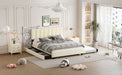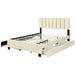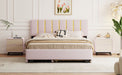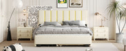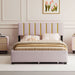 Queen Size Upholstered Platform Bed With 2 Drawers And 1 Trundle, Classic Strip Headboard Design - Beige