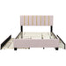 Queen Size Upholstered Platform Bed With 2 Drawers And 1 Trundle, Classic Strip Headboard Design - Pink