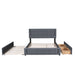 Queen Size Upholstered Platform Bed With Trundle And Drawers - Gray