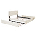 Queen Size Upholstered Platform Bed With Trundle And Drawers - Beige