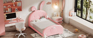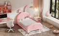 Twin Size Upholstered Rabbit-Shape Princess Bed, Twin Size Platform Bed With Headboard And Footboard - Pink