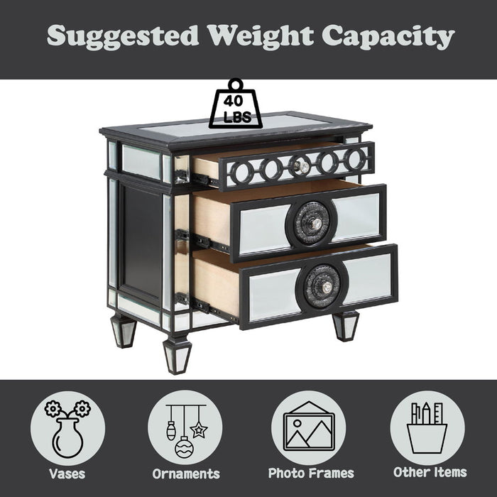Varian II - Nightstand - Mirrored, Black & Sliver