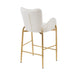 Velvet Counter Height Bar Stools (Set of 2) With Golden Legs And Footrests - White