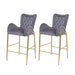 Velvet Fabric Counter Height Bar Stools (Set of 2) With Legs And Footrests, 28.75" - Gray