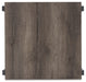 - Laminate features a replicated wood grain with a weathered gray coloration
