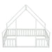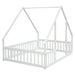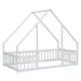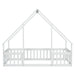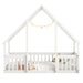 Full Wood House-Shaped Floor Bed With Fence, Guardrails - White