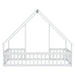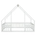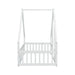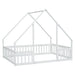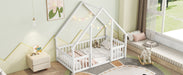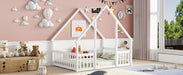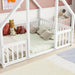 Twin Wood House-Shaped Floor Bed With Fence, Guardrails - White