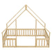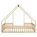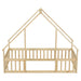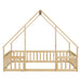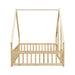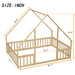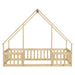 Full Wood House-Shaped Floor Bed With Fence, Guardrails - Natural