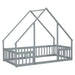 Twin Wood House-Shaped Floor Bed With Fence, Guardrails - Gray
