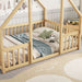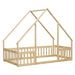 Twin Wood House-Shaped Floor Bed With Fence, Guardrails - Natural