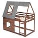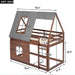 Wood Twin Size House Bunk Bed With Roof, Ladder And 2 Windows - Oak & Smoky Gray