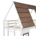 Wood Twin Size House Bunk Bed With Roof, Ladder And Slide - White / Brown