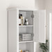 Wooden Bathroom Floor Storage Cabinet With 2 Doors And 6 Shelves - White