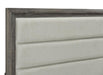 Create your ideal bedroom ambiance with the fresh, casual style of this transitional bedroom set. It features engineered wood construction with durable laminate surfaces, creating a stylish look with its brown oak wood grain finish. The set is clean lined, delivering a tall, squared headboard with foam padding and tan upholstery, creating the perfect place for lounging and reclining. The bed is complete with a low footboard and rails, offering a complete look that remains open and airy, great in small and large bedrooms alike. Storage pieces add ample drawer space and roomy tops, perfect for creating organization and offering a place for a personal touch of decor.