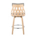 - Comfort and Style: The stool's padded seat is upholstered in chic fabric, complemented by a natural finish lattice back, offering both comfort and visual appeal.