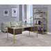 The industrial and classic design of the Yumia desk creates a spacious work area. The drawers maximize your space and your options in classic style, while keeping all your essentials neatly and safely tucked away. The gold finish and tempered glass top, add a different look to any work space.