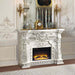 The Adara fireplace mantel features old-world sophistication that is rarely seen in today's market. This enchanting LED electric fireplace is finished in antique silver and will elevate any room. The soft glow from the faux embers and logs casts a beautiful flame that will illuminate your home. The fireplace functions include: Adjustable Temperature, Timer, & Light Only.