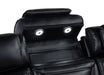 Designed for modern comfort and convenience, this dual power loveseat blends technology with bold styling. Power recline and adjustable power headrests offer personalized relaxation, while the center console features a lift-top compartment, two cup holders, and a built-in Bluetooth speaker for seamless audio. Finished in sleek black leatherette with dramatic LED under glow, it brings smart design to any contemporary lounge or home theater.